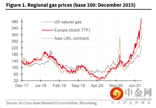 法兴银行表示,即使天气恢复正常,供应方面迅速跟上,预计天然气价格至少在2022年初之前仍将居高不下且非常不稳定,因为库存仍需要从目前的低点慢慢恢复。