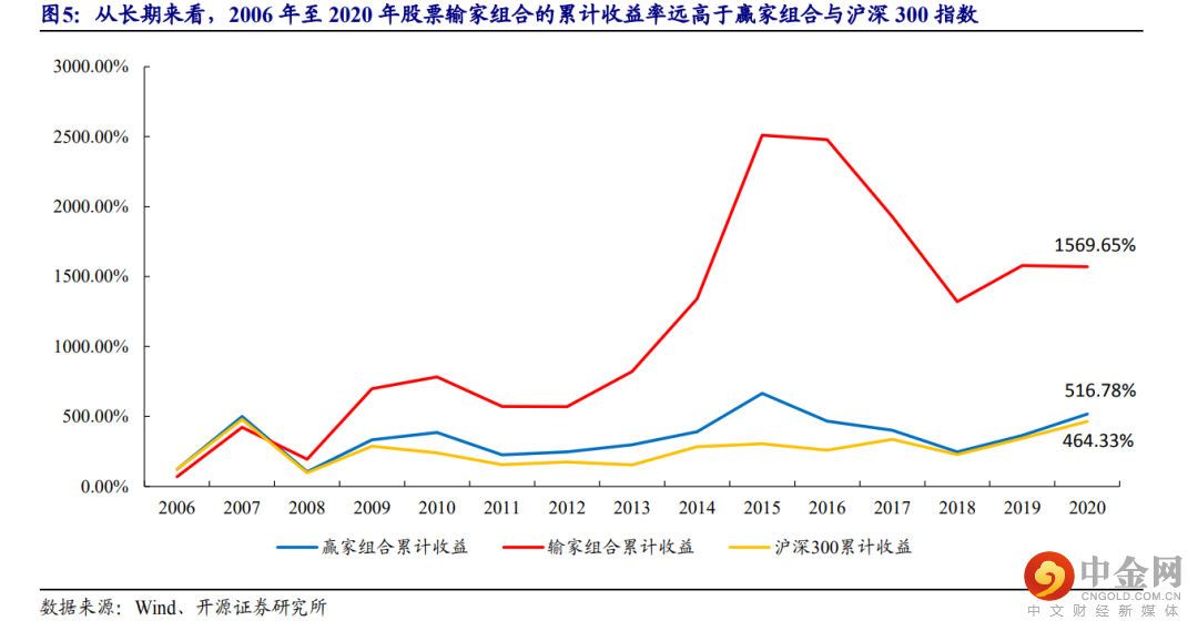 同样,今年业绩不佳的基金,也各有各的原因。实际上,单纯的业绩,能反映出的信息是非常少的,有许多成熟研究表明,基金业绩不具备显著的动量。也就是说,在历史上的某些时段,可能会像下图这样,过往一年业绩优秀的基金,反而长期跑输一年业绩不佳的基金。