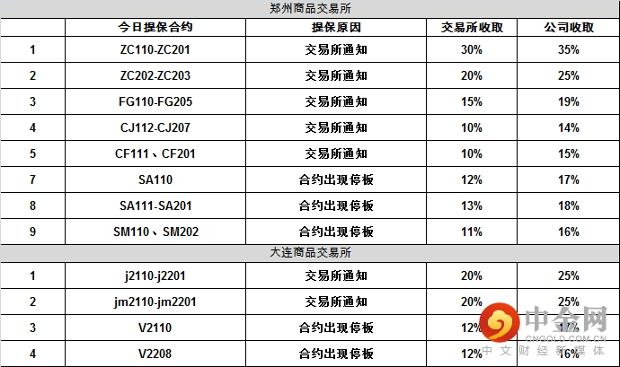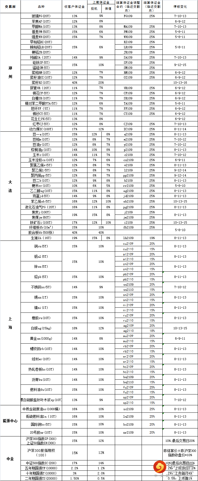 交易提示 | 期货交易保证金率一览(0928)