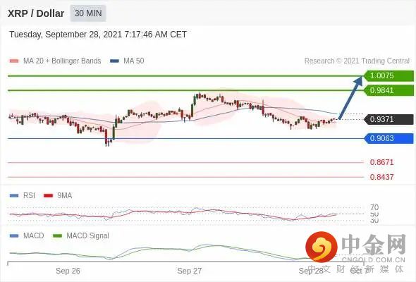 RSI 高于其中性区域 50。MACD 高于其信号线且为负值。MACD 必须突破其零水平才能触发进一步上涨。此外,价格在其 20 周期移动平均线(0.9327)上方交易,但低于其 50 周期移动平均线(0.9462)。