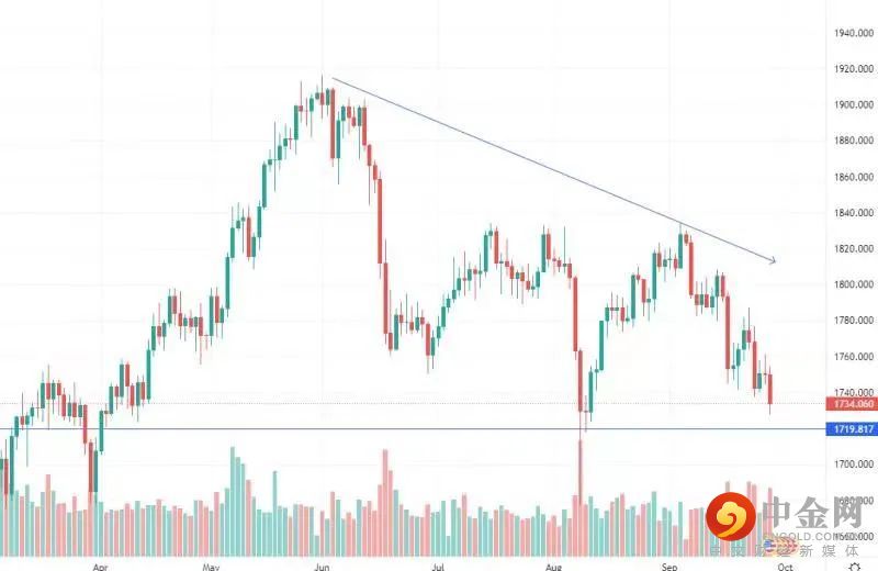 黄金价格在1720附近会有支撑。