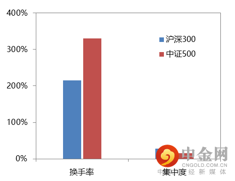 如下图,沪深300指数增强基金平均前10大重仓股集中度28.69%,半年换手率215.51%;中证500指增基金集中度15.95%,半年换手率329.65%。中证500指数换手率更高而集中度更低,反映出量化方法在中证500指增中运用更广泛。