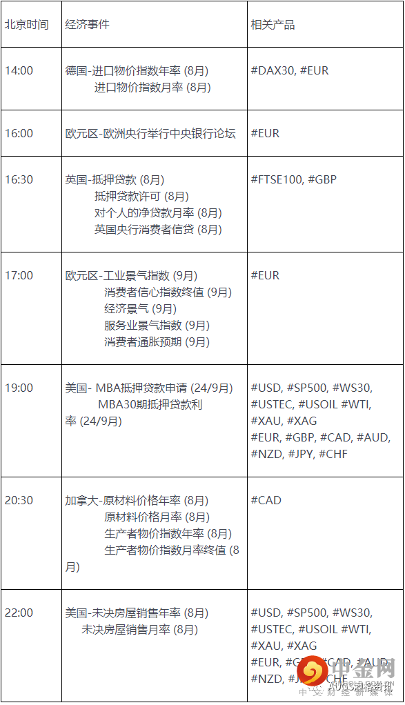 澳元/美元触及高位0.7310,之后美国时段跌至0.7225。由于全天风险厌恶情绪维持,澳元/美元收于0.7235附近。澳大利亚零售销售数据乐观,澳元获得支撑,8月录得-1.7%,高于-2.7%,好于预期值-2.5%。澳元/美元因股市拖累走低,反映出市场情绪低迷,另外由于经济运行持续瓶颈和供应链中断,投资者担心全球经济复苏的步伐,此外黄金疲弱打压汇价。小时图显示,澳元/美元跌破关键阻力0.7250,该水平是8月/9月升势的61.8%回档位,4小时图显示,澳元/美元正跌破所有均线,20移动平均线恢复跌势,下方支撑看向0.7210,接着位于0.7175,上方阻力看向0.7250,接着位于0.7290。