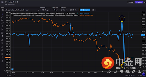 与价格下跌的方式相同,价格迅速回升,因为在 30 分钟后看到交易所流出 4,000 BTC。