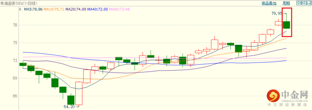 此外,受美元指数上涨的影响,贵金属等大宗商品也出现了下跌。其中,国际金价下跌1.03%,报收1733美元/盎司。原油价格冲高回落,由上涨1.71%回落至下跌1.5%。