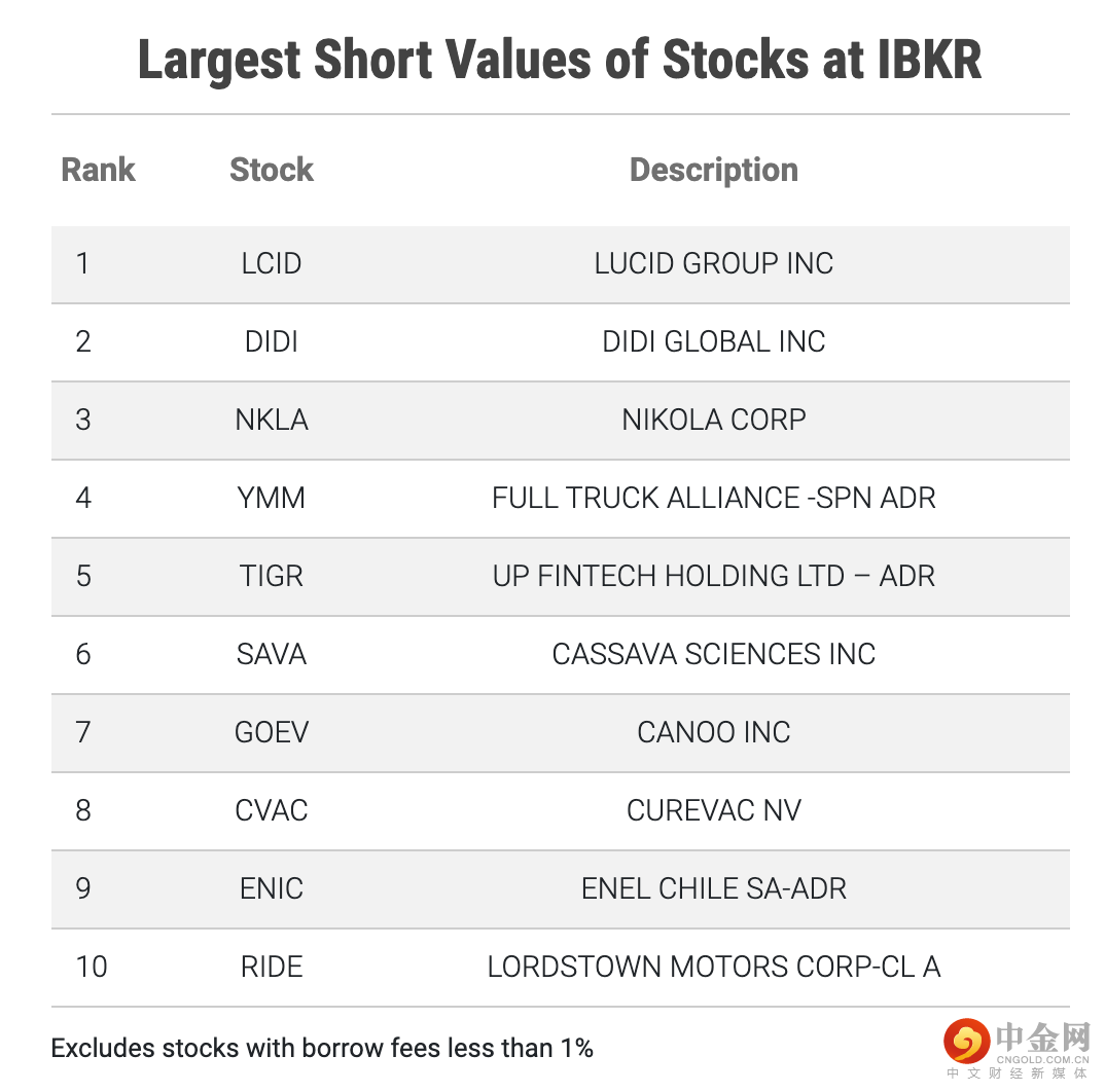 下表中列出的是2021/9/28具有最大做空值的10个证券。