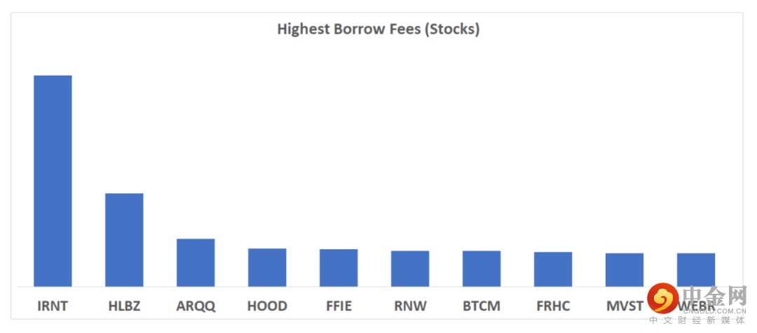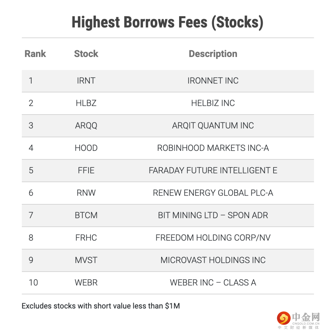 下表中列出的是2021/9/28具有最高借入费用的10个证券。