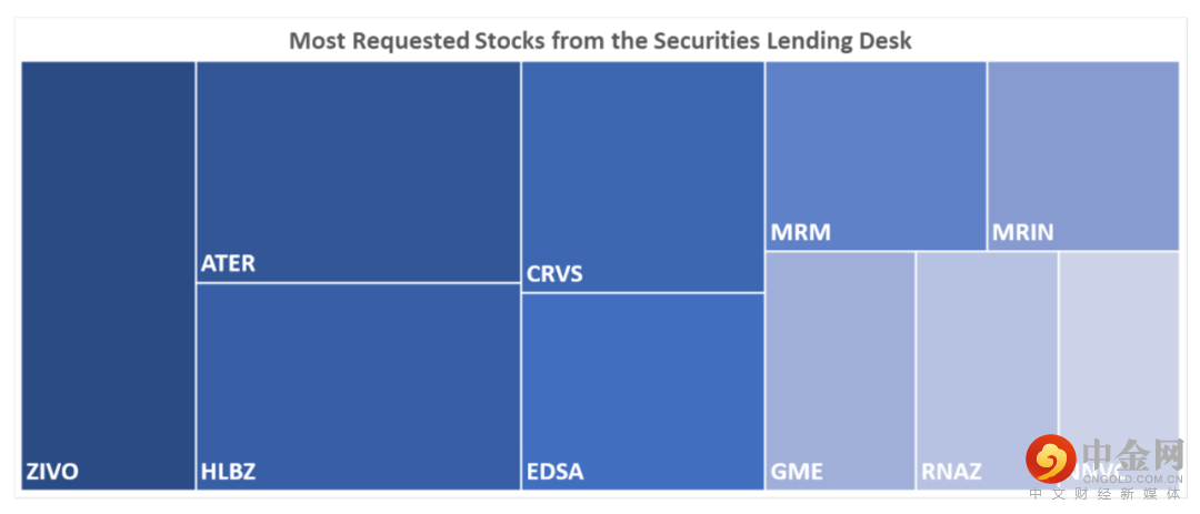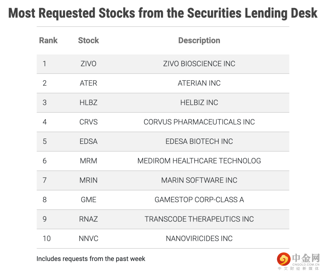 下表中列出的是2021/9/28借入需求最高的10个证券。