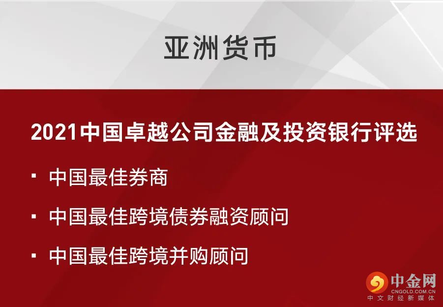 日前《亚洲货币》正式公布了2021中国卓越公司金融及投资银行评选全部获奖结果。中金凭借突出的专业实力在激烈的评选中脱颖而出再次取得了优异成绩,荣获了“中国最佳券商”“中国最佳跨境债券融资顾问”“中国最佳跨境并购顾问”三项重量级奖项。