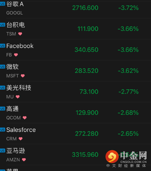 周二,美股科技股也纷纷收跌,亚马逊跌2.64%,Facebook跌3.66%,谷歌跌3.76%,微软跌3.62%,奈飞跌1.48%。