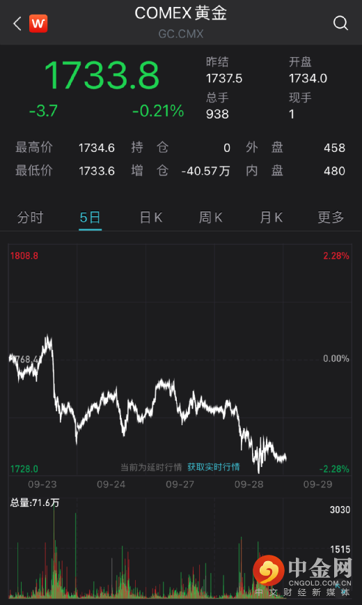黄金期货则跌了不少,跌破1740美元盎司/关口,盘中创七周新低。