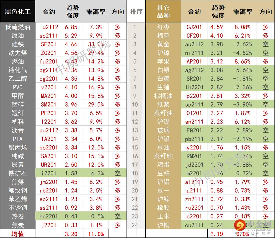 中期商品趋势榜 | 能源硅铁动力煤三大多头仍强势(0928)
