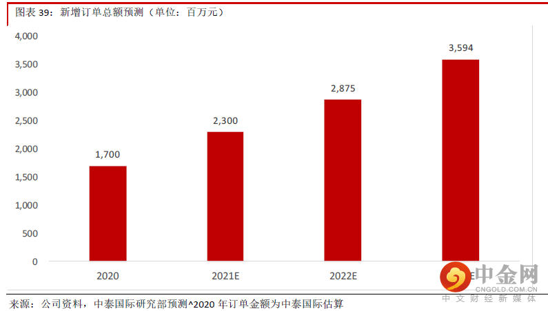 公司业绩能见度很高,预计总收入2020-23E CAGR 为41.6%,理由包括:1)公司2020 年 获得的约17 亿元新增订单中多数将于2021 年兑现。2)公司获取订单能力越来越强, 2021 年上半年新增订单约13 亿元,保守预计全年将获23 亿订单,未来也将快速增长。3)一站式服务能力将不断提升,海外业务进展顺利,品牌知名度也将提升,这些有助于 获取新订单。