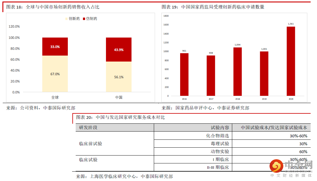 中国药物安评行业需求空间巨大。我们认为药物安全性评价未来的需求空间仍将保持快速增长,主要理由 包括:1)CRO 行业需求将持续快速增长:全球新药研发需求不断增加,中国药企也将越来越重视改良型 新药(Me-better)与创新药(First-in-class)的研发,这些将增加研发服务的需求。首先,中国市场对优质 改良型新药的需求很大。改良型新药是指在已知活性成分的基础上,对其结构、剂型、处方工艺、给药途 径、适应症等进行优化,且具有明显临床优势,境内外均未上市的药物。由于改良型新药相对售价较低, 而且药企投入的成本与资金也不会太多,未来几年研发需求仍然会很大。其次,中国市场对优质创新药的 需求将快速增长。通常来说,优质创新药在药物靶点、分子实体、药物结构方面都有所突破,因此全球范 围内创新药的市场需求不断提升,海外龙头药企都非常注重优质创新药的研发。中国市场目前创新药占比 还明显低于全球水平,我们预计随着收入水平的提升,中国患者对优质新药的需求将增加,企业也将更加 重视创新药的研发,研发与生产外包的需求也将相应增加。2)药物安全评价的外包率将维持在高水平, 未来继续受益于医药研发需求的提升。由于中小型药企短期内很难建设GLP 实验室,我们认为未来药物安 评业务的外包率仍然会很高,将受益于新药研发的需求。3)长远看我们预计更多海外企业将使用中国药 物安全评价服务的龙头企业。中国CRO 行业的服务成本远远低于发达国家。根据上海医学临床研究中心的 统计,中国毒理服务的平均成本仅为发达国家的30%左右,因此我们预计随着国内服务水平的提升,长远 看将有更多海外药企选择中国龙头企业作为服务提供商。
