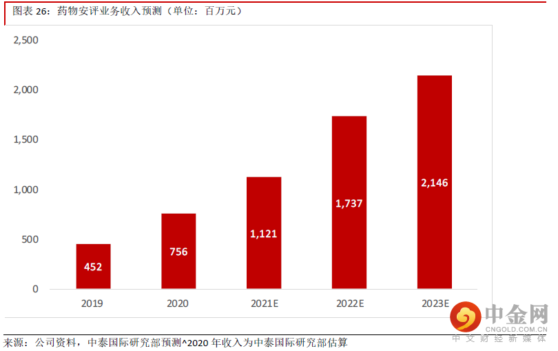 我们估计2021年药物安评业务的收入为约7.6亿元。我们估计公司近年的新增订单中有约70%来自药物安评业务,从近年的新增订单情况推算,我们预计药物安评药物收入将维持快速增长。