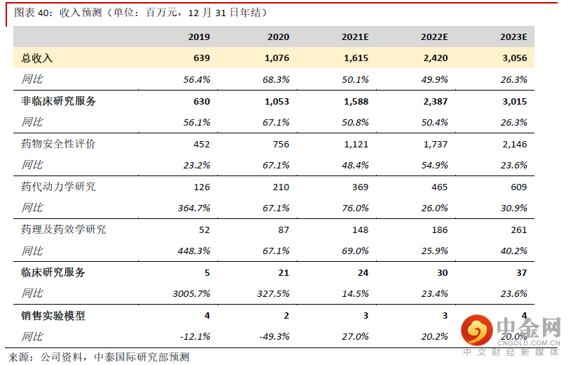 药代动力学、药效学与药理学分析方面的订单不断增加,未来将加速发展。公司的临床前研究服务除了安评以外,还包括药代动力学与药理及药效学服务。公司早年通过药物安全性评价积累了大量客户,药代动力学、药效学与药理学的订单也在不断增加,我们预计这两块业务未来将受益于行业需求的增长。