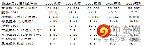 公司的产能扩张仍然在有序进行中,但受疫情影响,北海的包装纸项目扩产有所延期,预计将于23年的Q4和24年的Q2陆续达产,沈阳和北海的纸浆项目也将面临半年左右的延期,预计到2024年中公司将新增约1107万吨包装纸、再生浆以及木纤维产能,新增产能将进一步深化公司产业链垂直整合能力,在废纸成本中枢向上的大背景下,公司盈利能力将得到进一步的提升。我们略微上调盈利预测,预计22/23/24财年公司净利润约为78亿、86亿及99亿元人民币。目标价16.00港元,相当于2022财年8倍PE,维持买入评级。
