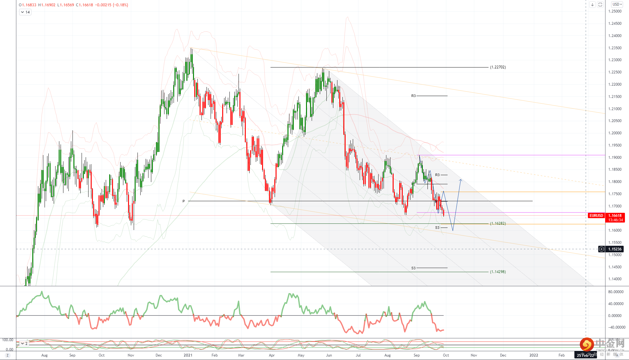 昨天再次守住后,关键支撑位在 2021 年低点 1.1664