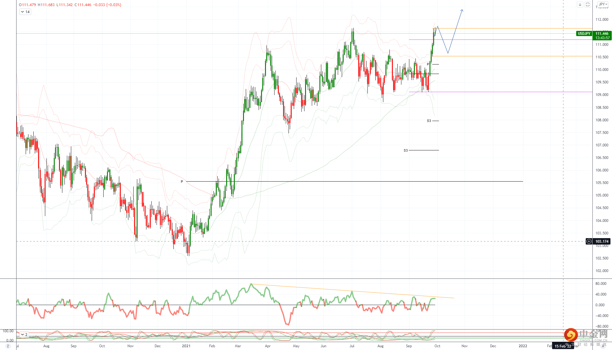 低位限于 111.35,但与美债收益率同步走低