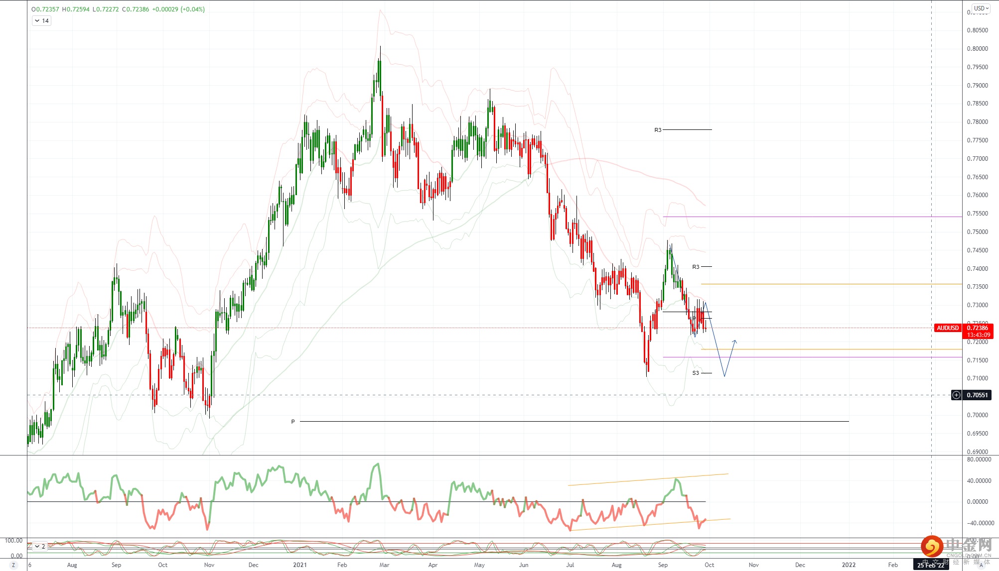 支撑位在0.7220/25,在过去两周已触底