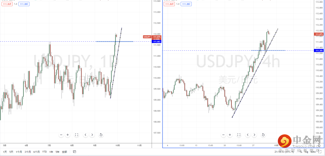 美日天图:目前趋势继续保持多头方向,短期价格在突破前期水平压制带111.663附近后进入调整阶段。由于趋势单边力度较强,不宜追多行情。从日内4小时级别,价格在短期回测支撑带111.305附近起稳向上。可适当关注价格调整后继续上行的多头机会,上方区间目标位置附近参考周线前期高点附近。