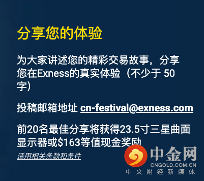 而短期优惠活动有时候也会有这种机会,比如春节的红包抽奖活动,基本上非常低的要求就可以参与,薅一波经纪商的好羊毛。而在其他的节日,也会有这种活动,还是经纪商Exness在2021年9月20日-2021年10月8月期间“分享体验”活动。只要在Exness交易时间达到5个工作日,就可以写一篇体验发邮件给Exness邮箱,前20名最佳分享将获得23.5寸三星曲面显示器或$163等值现金奖励。