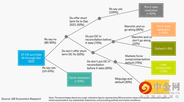 尽管包括德银、瑞银等在内的很多分析机构,都仍然认为美债违约的可能性非常低,然而随着截止期限临近,民主党目前仍然排除通过和解程序来提高债务上限的可能性,越来越多的投资者被迫为美债“违约”做准备。