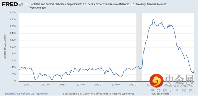 在美联储购买后,美国财政部在纽约联储的财政部存款账户(TGA)相应将增加1万亿美元。