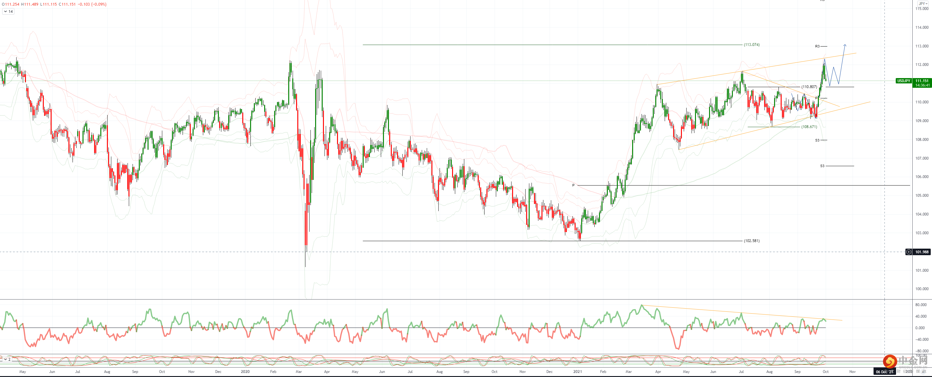 期权到期支持性,260亿美元110.50-111.00美元,仅111.00美元就有100亿美元