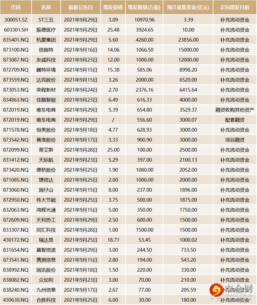9月29日,A股主板市场中,ST三五、振德医疗2只个股公布了定增预案,增发价格均低于市场最新价,其中,振德医疗的预案差价高达10.13元。