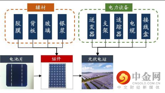 下游电站将光伏组件和电力设备配套,建成光伏电站。