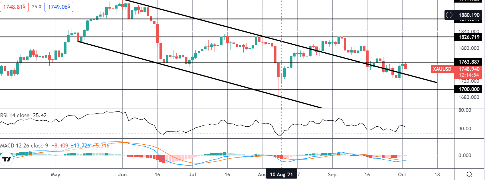 本周,焦点将集中在周五到期的美国9月劳工报告上。尽管美联储最近承认通胀强劲,但主席鲍威尔指出,就业率仍远未达到最高水平。考虑到这一点,如果我们看到意外上涨,周五的数据有可能造成大量市场波动。在我们在8月数据中看到的明显的未知数背后,市场并不期待9月就业岗位增长49万,高于此前的23.5万。如果我们看到这一水平或更高水平的数据,可能会加剧市场逐渐下降的预期,创造大量美元需求,对黄金构成压力。然而,如果数据再次表现不佳,金价可能会因数据而大幅走高,美元可能面临巨大的抛售压力。