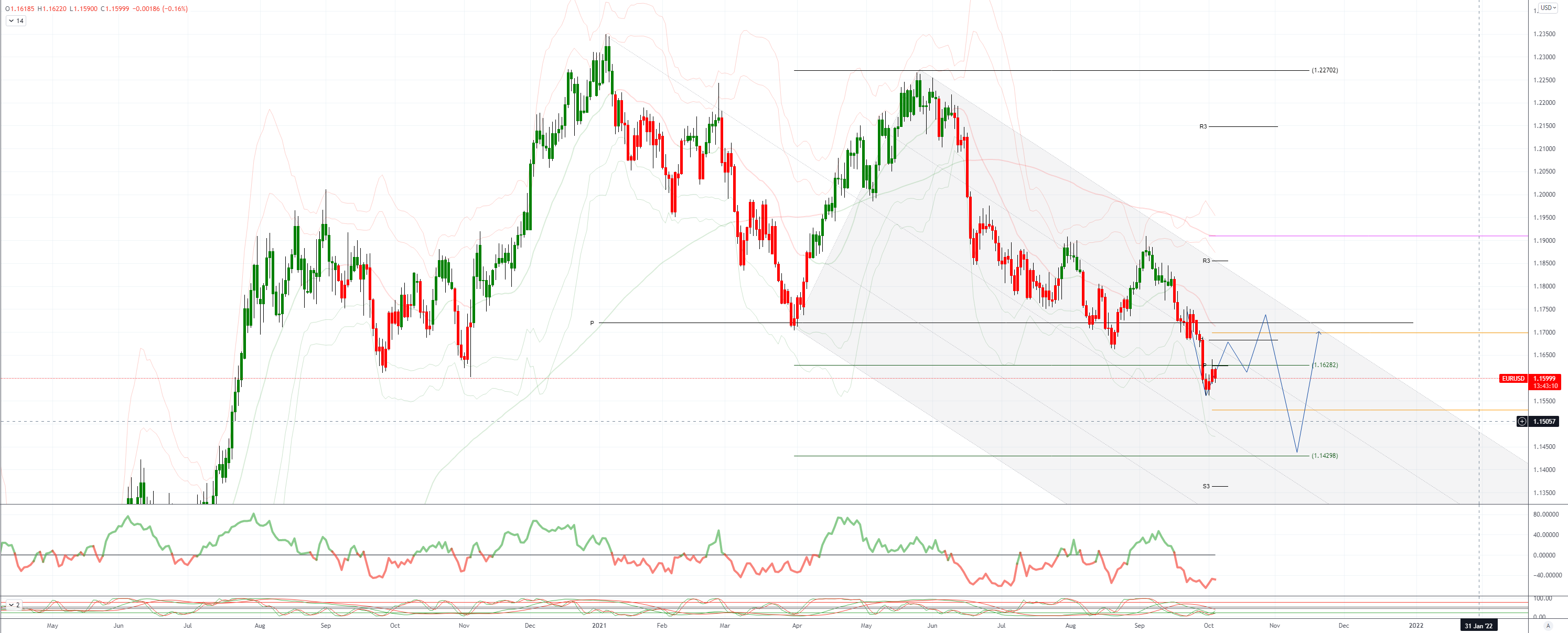 支撑位位于昨日1.1588低点,双底位于1.1560/65