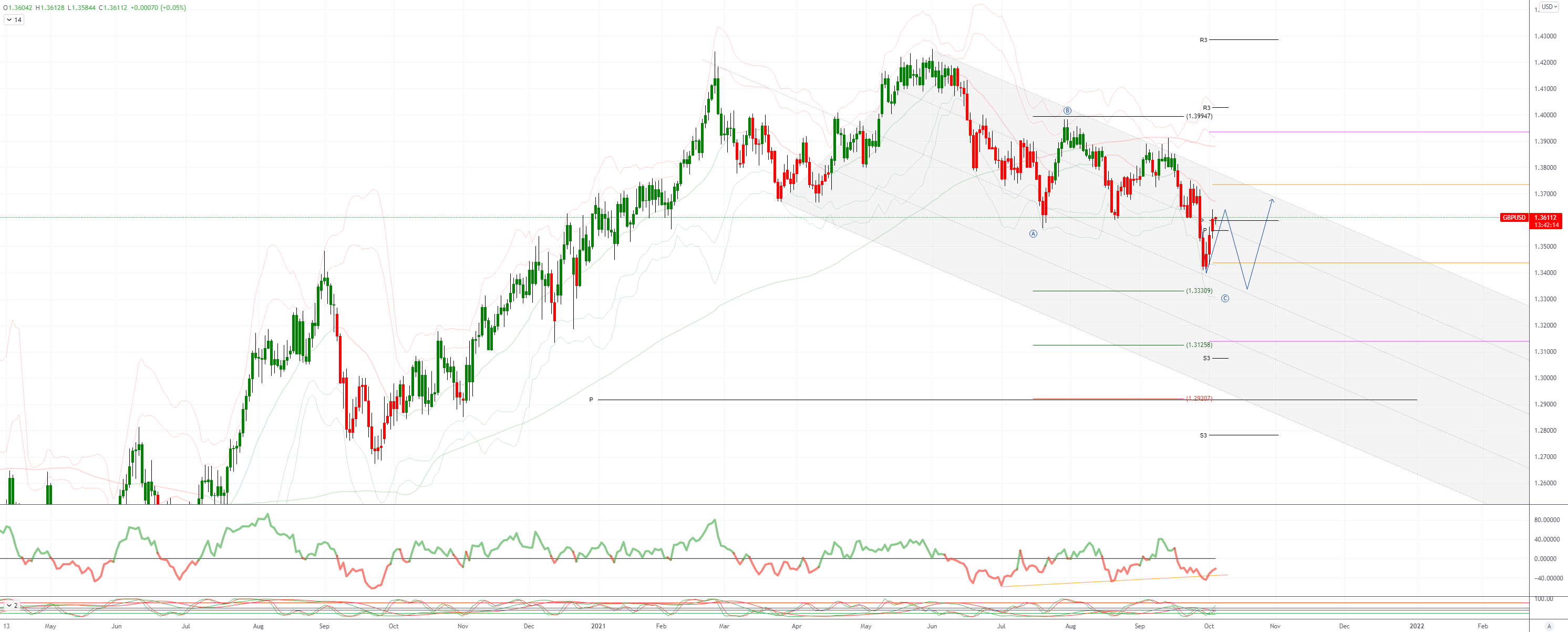 GBPUSD 日内偏差: 看跌低于1.36,看涨高于1.36。