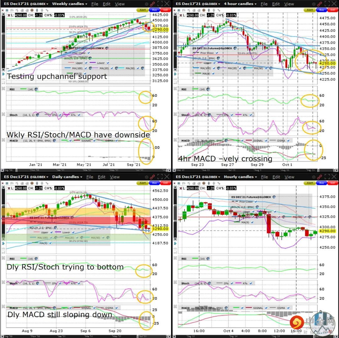 值得注意的是,标普500指数期货正测试周线图的上行通道支撑线,10月份出现周收盘价格低于这一关键上涨趋势支撑线的可能性很高。