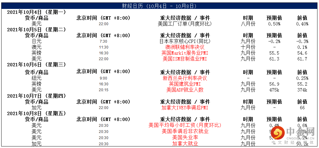 周二,美元指数小幅走高,因投资者关注通胀持续高企的威胁以及美联储未来政策路径,交易商在本周末公布关键就业报告前仍持谨慎态度,该报告可能为美联储下一步行动提供线索。另外,今晚20:15,美国9月ADP就业数据公布,预期值为增加43万人,但7月和8月ADP的就业人数约为预期的一半,9月非农就业数据是美联储确定缩减购债规模的关键。整体来看,美元中长线为偏强结构,短线也为震荡偏强结构。