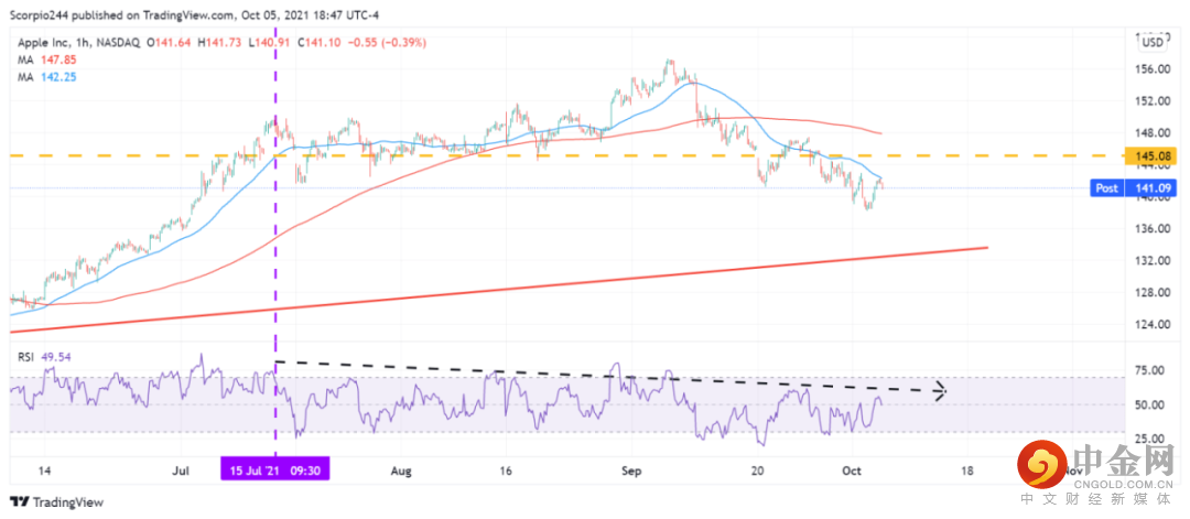 苹果公司股票指向130美元的趋势线看起来仍在稳定发挥作用。