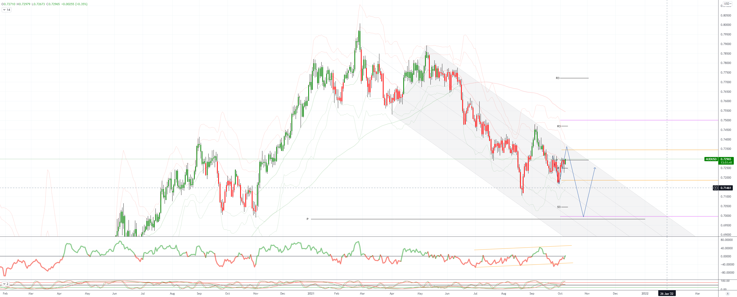 AUDUSD 日内偏差 : 看跌低于 0.75 看涨高于0.75