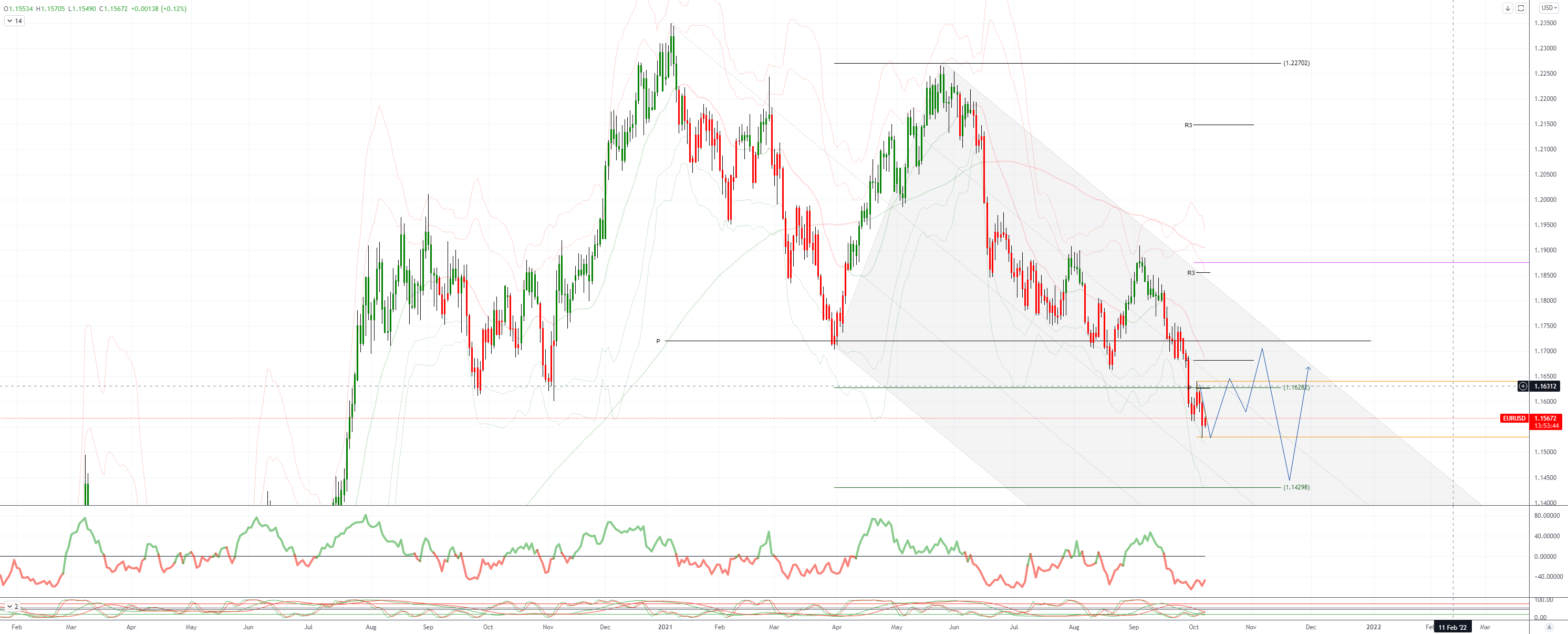 欧元/美元在交易至 2021 年新低 1.1529 后开盘 -0.35% 至 1.1556