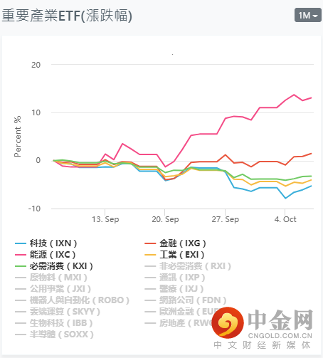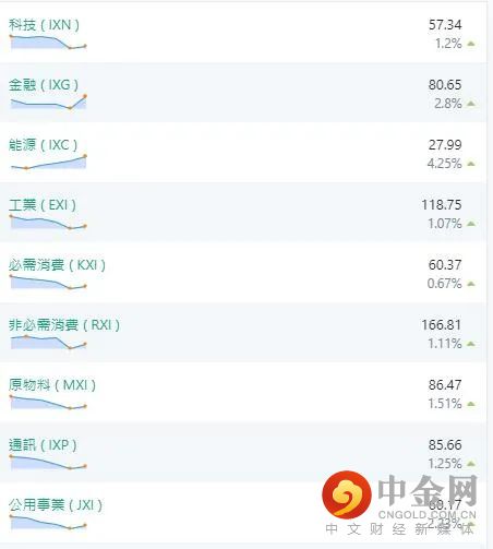 目前市场不利局面稍有改善,美国债务上限危机短期获得缓解,美国参议院通过一项将债务上限延长至12月3日的法案,该法案将提交给众议院并预计下周取得突破。从市场状态表现,美股三大指数全线上涨,道指上涨300点,科技股领涨大盘,中概股强势收涨。在ETF产业的表现中,能源类产业继续向上运行,,其它产业也有在分化的中有拐头上行迹象。短期关注:金融(IXG),能源(IXC),工业(EXI),公用事业(JXI),欧洲金融(EUFN),房地产(RWO)产业中个股的多头机会。