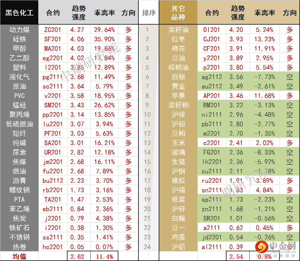 中期商品趋势榜 | 硅铁甲醇多头趋势,菜油棉花多头运行(0930)