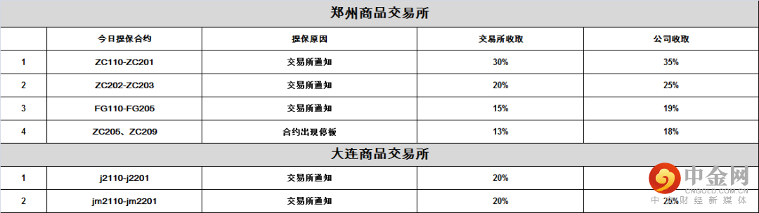 交易提示 | 期货交易保证金率一览(1008)