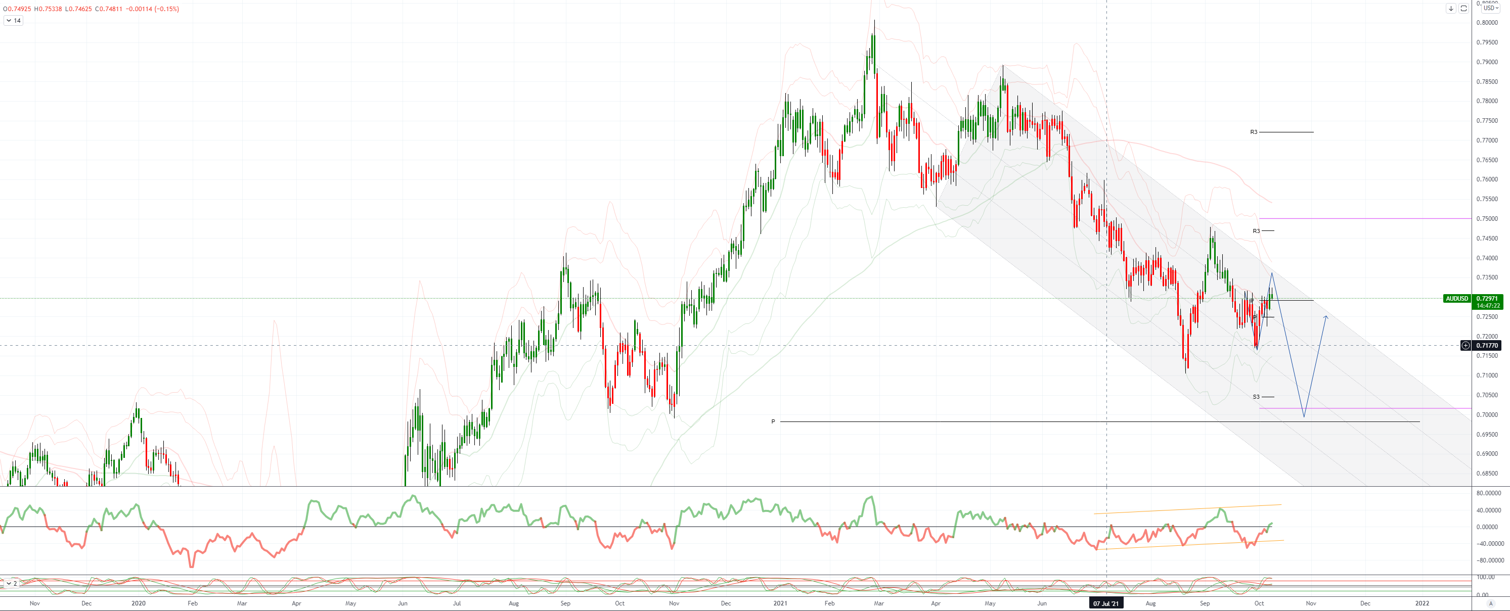 AUDUSD 日内偏差 : 看跌低于 0.75 看涨高于0.75