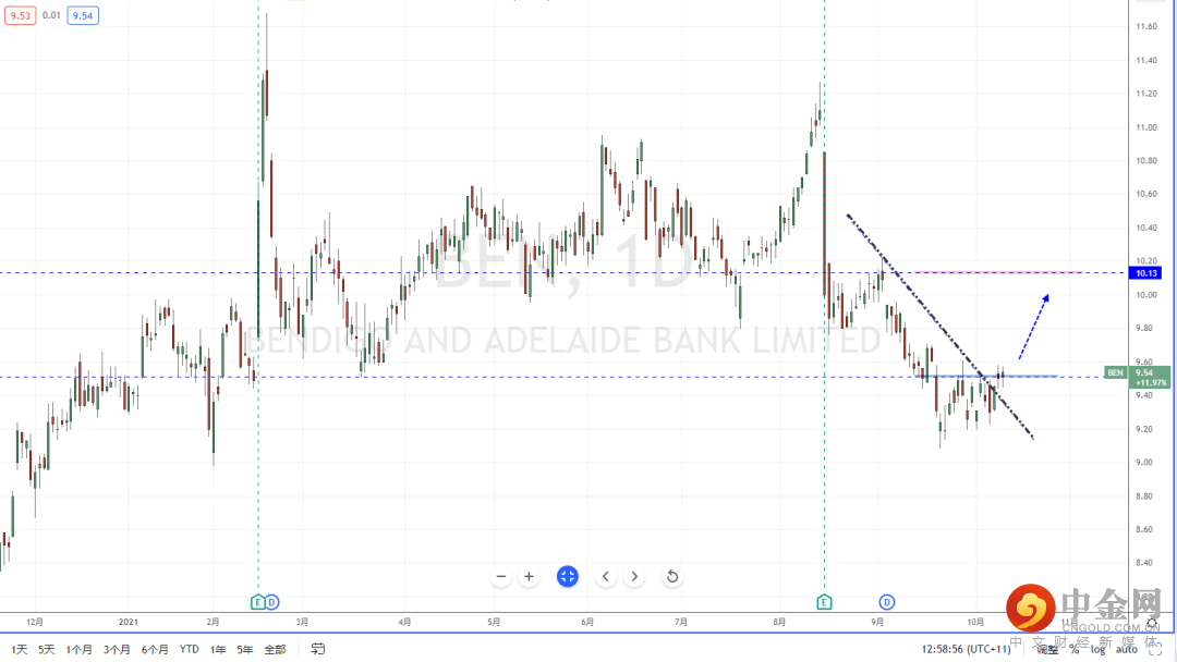 BEN:虽然近期市场得以缓解,但ETF产业分化相对严重。短期领涨产业除了能源之外,金融产业也有明显拉升。从BEN目前整体行情表现,在短期压制区域纠结后起稳上行。并且价格也有效突破下降趋势线的压制作用,短期可适当价格调整后继续上行的多头机会,上方目标位置参考10.13附近。