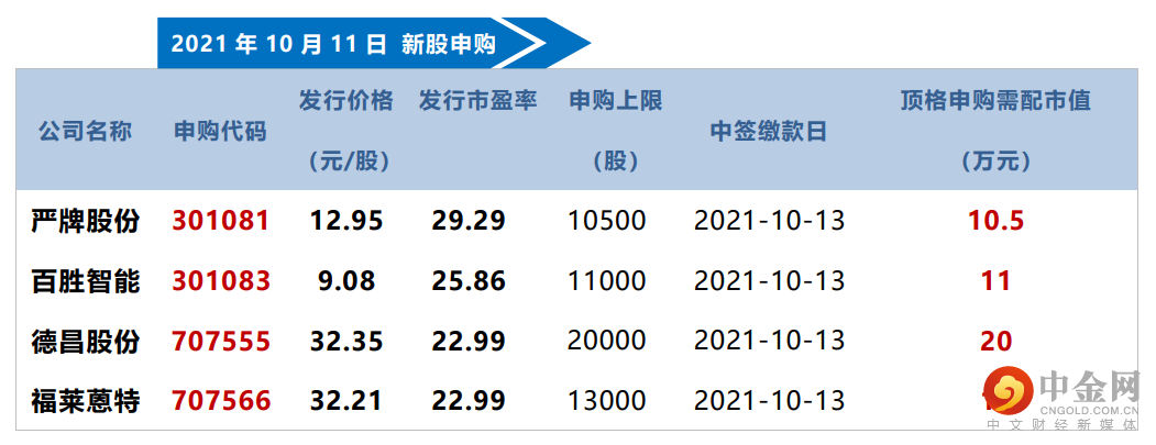 股票简称:百胜智能股票代码:301083申购代码:301083发行价格:9.08元/ 股发行市盈率:25.86顶格申购上限:11,000股顶格申购需配市值:11.00万元(深)申购时间:2021-10-11缴款时间:2021-10-13公司简介:各种出入口控制与管理设备的研发、生产和销售,并能够针对客户需求提供出入口控制与管理整体解决方案。