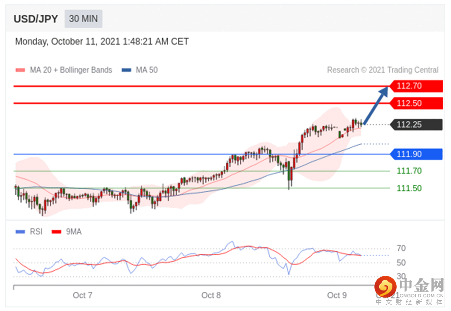 在 111.90 之上,看涨,目标价位为 112.50 ,然后为 112.70 。