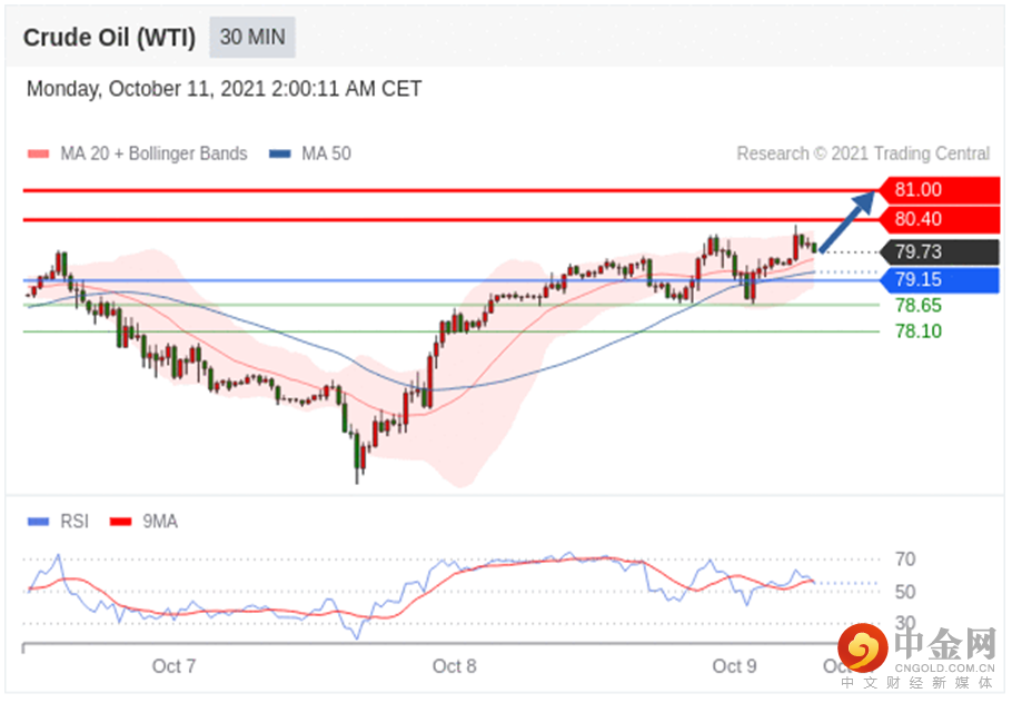 在 79.15 之上,看涨,目标价位为 80.40 ,然后为 81.00 。