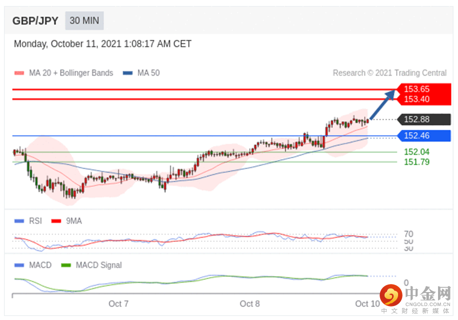 看涨,当 152.46 为支撑位,目标定在153.65。