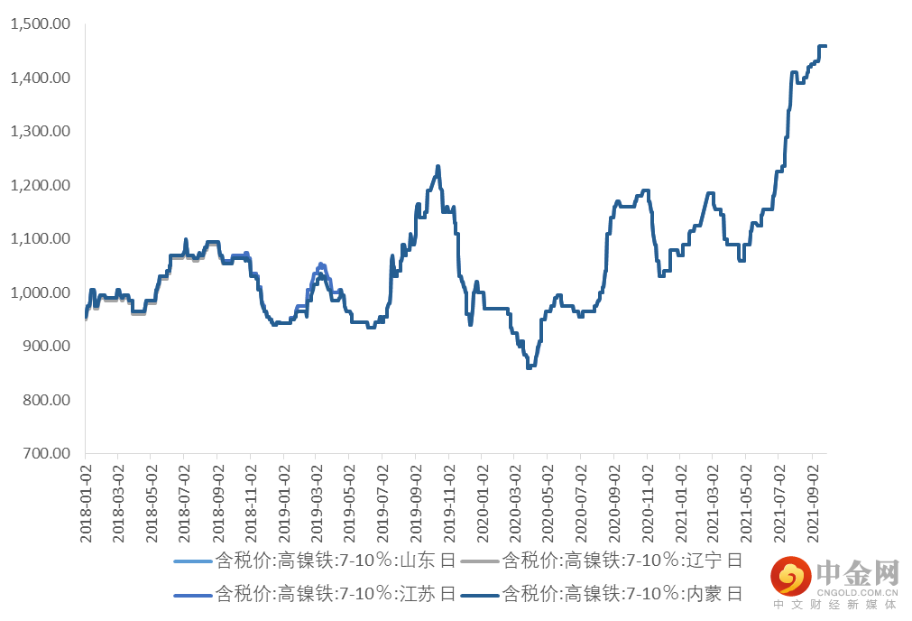 截止9月底,镍矿市场CIF成交价格NI:1.5%为93.5美元/湿吨,价格进入高位滞涨阶段。