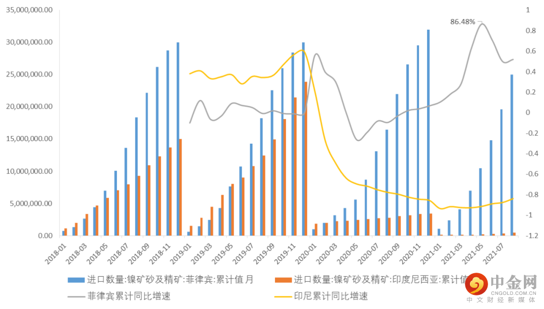 图1:9月菲律宾镍矿较前增加,同比增速上升